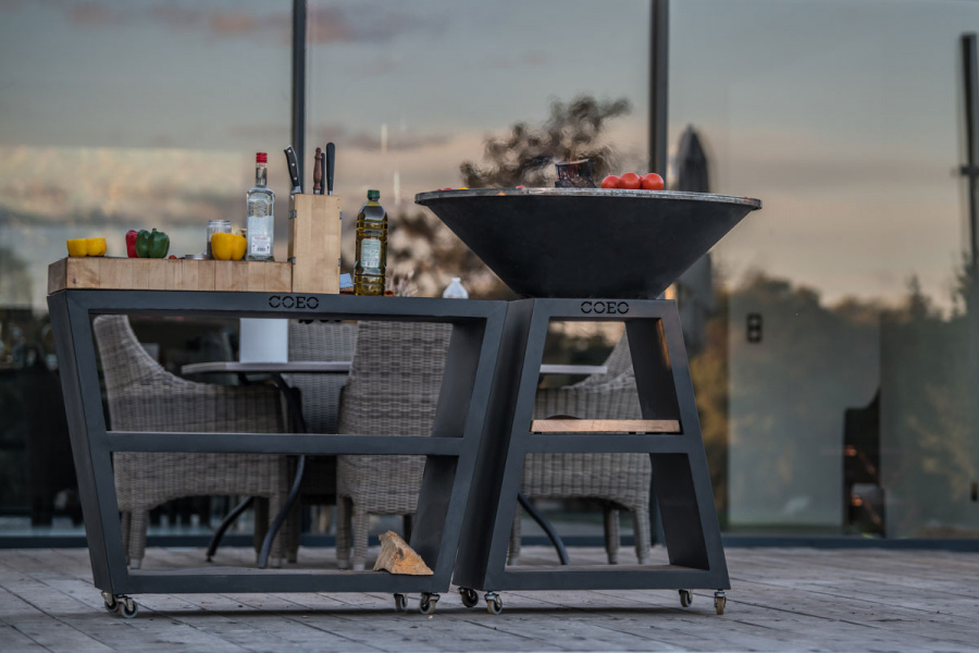 Pult - ostrov COEO je velkým pomocníkem všech, kteří chtějí mít při vaření prostor pro ingredience a suroviny, nádobí a náčiní a přitom být blízko svého grilu TRIO.