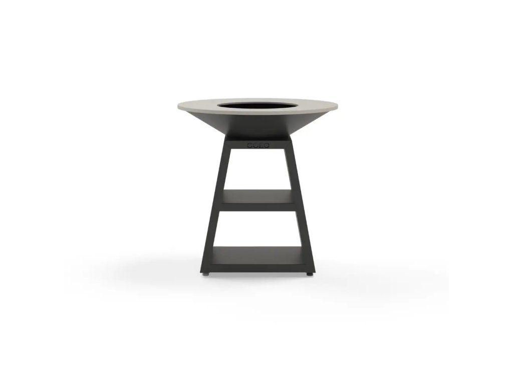 - Skloněná kruhová plancha: spád ke středu ohniště. Bez obroučky se šňůrou pro údržbu ohniště. Vyhovující pro styk s potravinami.