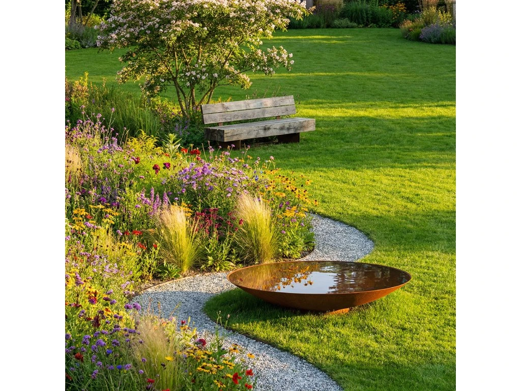 Ocelová mísa na vodu AQUA ADEZZ je zahradní prvek s minimální údržbou. Je to jeden z našich nejprodávanějších produktů oblíbený jak u hobby zahradníka, tak u krajinářských architektů a ceněný pro svůj nadčasový design. K tělu mísy je přivařen kruhový stojan, který umožňuje míse s vodou dobře sedět na tvrdém i měkkém podloží. Doporučujeme umístit spíše na stabilní podklad. Na volném trávníku takový podklad můžete vytvořit podložením nějaké pevné přírodní podložky.