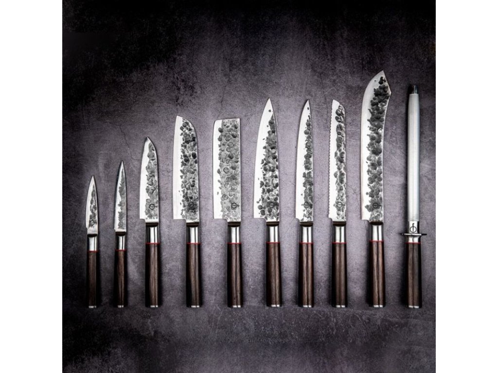 Kuchyňské nože Forged Sebra jsou jedinečné svým provedením i použitými materiály. Rukojeť je vyrobena z tmavého afrického dřeva známého jako Sebra, které dodává noži nejen luxusní vzhled, ale také příjemný a pevný úchop. Ručně kovaná čepel je z vysoce kvalitní japonské nerezové oceli 440C, která se vyznačuje skvělou ostrostí, odolností a dlouhou životností.