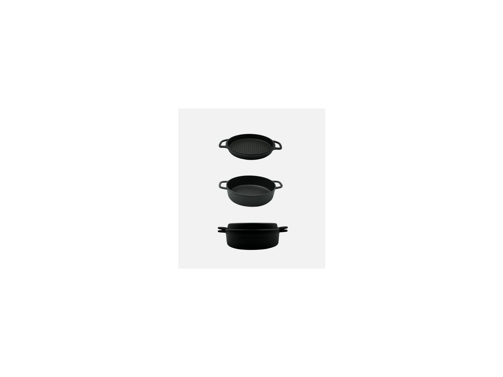 Kastrol /Zapékací pánev – Víko použitelné na grilu jako pánev (litina)